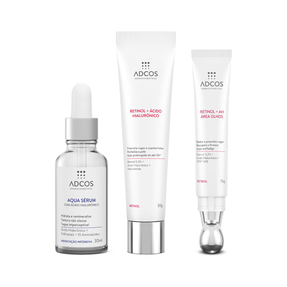 Uso conjunto: DIA: Passo 1 – Higienizar o rosto com o seu sabonete preferido. Indicamos o Sabonete Iluminador com Vitamina C. Passo 2 – Aplicar de 3 a 4 gotas do Aqua Sérum. Passo 3 – Utilize o seu protetor solar favorito. Indicamos o Protetor Solar Stick FPS 80. Reaplique-o sempre que necessário. NOITE: Passo 1 – Higienizar o rosto com o seu sabonete preferido. Indicamos o Sabonete Iluminador com Vitamina C. Passo 2 – Aplicar de 3 a 4 gotas do Aqua Sérum. Passo 3 – Aplicar o Retinol + Ácido Hialurônico por toda a face. Passo 4 – Aplicar o Retinol Área Olhos na região. Uso separado: AQUA SÉRUM: Aplicar sobre a pele limpa e seca na face, pescoço e colo pela manhã e/ou à noite. RETINOL + ÁCIDO HIALURÔNICO: Com a pele limpa e seca, aplique do rosto ao pescoço, uma vez ao dia, preferencialmente à noite, massageando até completa absorção. Evite a região dos olhos. Não deixe de utilizar protetor solar durante o dia. Durante a primeira semana de uso, aplique pequenas quantidades do produto, em dias alternados. Se sensações de desconforto surgirem durante o uso, espaçar as aplicações até que a pele fique habituada ao retinol. RETINOL ÁREA OLHOS: Aplicar na região inferior da área dos olhos massageando até absorção. Utilizar apenas à noite e, durante o dia, utilizar protetor solar. É importante verificar a tolerância na pele ao usar retinol até que ela fique habituada. Durante as primeiras semanas, aplicar o produto de 1 a 2 vezes na semana, aumentando gradualmente até a utilização diária, de acordo com a tolerância. Se surgirem irritações, utilizar o produto novamente somente após cessar o desconforto, reiniciando o tratamento conforme adaptação da pele.Pagamento e Segurança