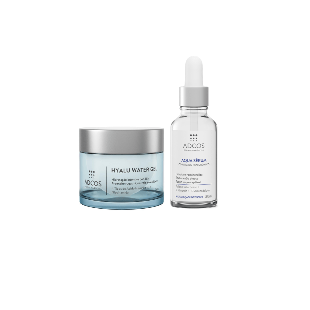 AQUA SÉRUM - Ácido hialurônico de muito baixo peso molecular: hidratação profunda de dentro para fora, preenche rugas finas e reorganiza a estrutura da pele. - 9 minerais: forma filme protetor hidratante, restaura os constituintes do Fator de Hidratação Natural da pele, possui capacidade de fixar água e tem ação antioxidante e antipoluição. - 10 aminoácidos hidratantes: componentes do Fator de Hidratação Natural, possui ação hidratante altamente eficaz, melhora a barreira de proteção da pele e deixa a pele mais resistente e fortalecida. - Ácido Lactobiônico: promove renovação celular, exerce efeito rejuvenescedor sem irritar a pele, possui elevada ação hidratante e potente ação antioxidante. - Biopeptídeo: estimula a atividade de aquaporinas, favorecendo o transporte de água entre as células, reforça a capacidade de adaptação a condições externas, reforça a reserva natural de água na epiderme e restaura hidratação, maciez e elasticidade da pele. - Extrato de planta andina: proporciona hidratação imediata e duradoura, possui alta capacidade de captar e reter água na pele e recupera o aspecto saudável da pele. - Pentassacarídeo marinho: recupera e mantém o equilíbrio da matriz extracelular dérmica, restaura a hidratação, restabelece a elasticidade e firmeza e promove aumento do colágeno. HYALU WATER GEL - Fração da Geleia Real: reduz a síntese de sebo e diminui o número de glândulas sebáceas ativas, tem ação antibacteriana e antifúngica. - Nano Ácido Hialurônico: restaura e fortalece a barreira da pele pelo estímulo da síntese de proteínas de sustentação, aumenta a hidratação natural da pele, reconstitui o reservatório hídrico através do estímulo de 5 proteínas envolvidas no processo de hidratação global e fortalece a junção dermoepidérmica. Maior resistência as agressões externas, estimula a renovação celular, a produção de colágeno e restabelece a homeostase da pele. - Ácido Hialurônico de alto peso molecular: hidratação intensiva, forma filme protetor, fixando a umidade sobre a pele, reduz rugas e linhas de expressão e com poder lubrificante, proporcionando textura sedosa e suave. - Elastômero de Ácido Hialurônico: hidratação de longa duração (24 horas), possui capacidade de se ligar à água e formar um filme, protege a pele contra a poluição e aumenta a hidratação em 110%. - Ácido Hialurônico de muito baixo peso molecular: penetração profunda na camada córnea da pele, retendo a umidade nela. Restaura a barreira cutânea, promove a hidratação na pele duas vezes mais do que o ácido hialurônico comum e hidrata a longo prazo. - Niacinamida: antioxidante, melhora a função barreira da pele, despigmentante, melhora textura e tom da pele, reduz linhas finas e rugas, ação anti-inflamatória, mantém a hidratação e normaliza as ceramidas e ácido graxos da pele e reduz a oleosidade. - Polissacarideo hidratante: hidratação profunda por até 72 horas, deixa a pele mais saudável e macia, com menos descamação, repuxamento e pinicação. 100% natural, derivado de grãos de milho. Reduz visivelmente a descamação, fortalece a função barreira da pele, acalma a pele por até 24 horas, fortalece o microbioma cutâneo e devolve a vitalidade à pele. - Vitamina E: antioxidante, estabiliza as membranas biológicas, tem ação contra o envelhecimento cutâneo, melhora a microcirculação cutânea, protege contra raios UVB e aumenta a hidratação da camada córnea. - Tetradecyl Aminobutyroylvalylaminobutyric Urea Trifluoroacetate: aumenta a produção de ácido hialurônico endógeno, possui efeito remodelador e firmante da pele pela estimulação da biossíntese de glicosaminoglicanos e fortalece as fibras de colágeno.Modo de Usar