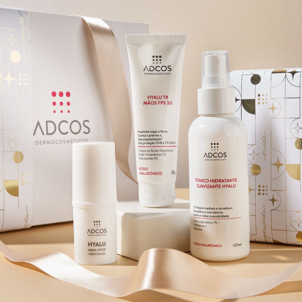 HYALU 6 AQUA FACE E OLHOS: Ácido Hialurônico com textura Water Stick com 1,5% de ácido hialurônico, que preenche rugas, promove frescor imediato e hidratação profunda. Com 4 tipos de Ácido Hialurônico e 2 bioestimuladores, reduz os sinais do envelhecimento, proporciona efeito volumizador, aumenta a firmeza e a luminosidade da pele.