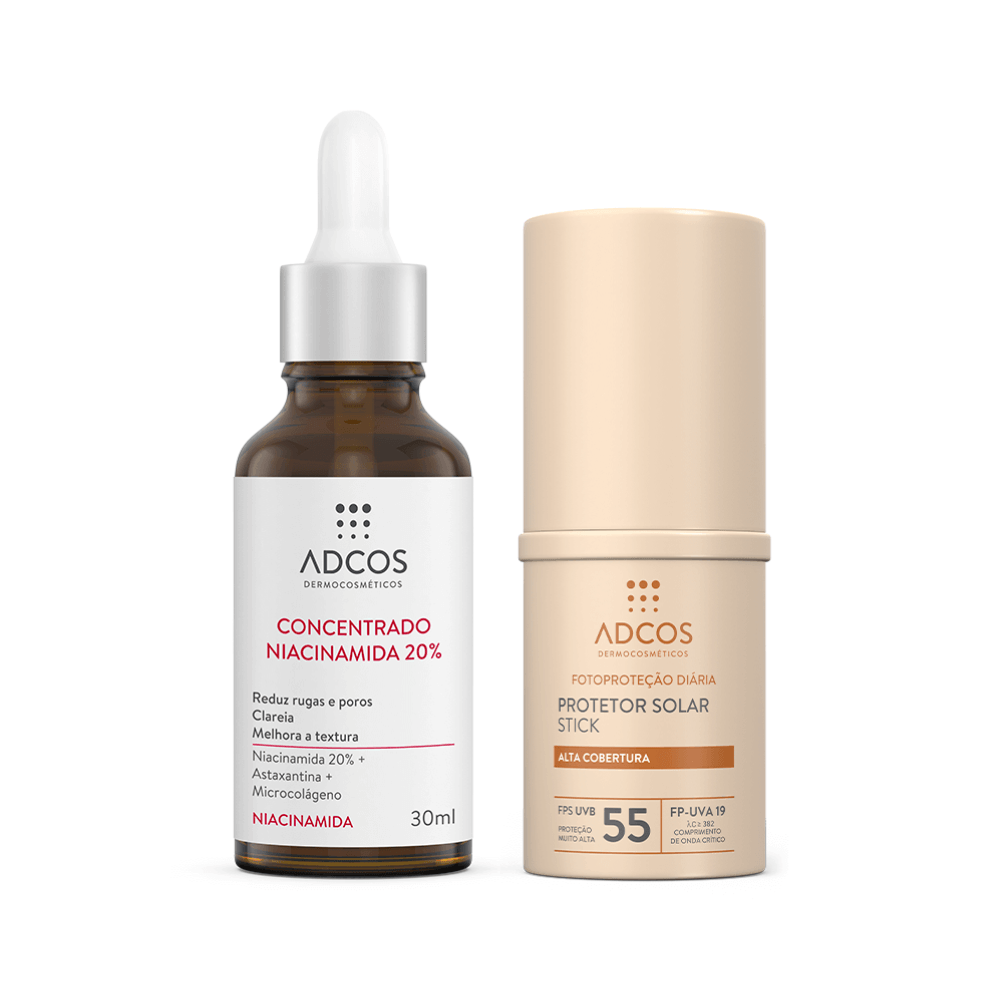 Uso conjunto: DIA: Passo 1 – Higienize o rosto com o seu sabonete preferido. Indicamos o Sabonete Iluminador com Vitamina C. Passo 2 – Aplique 3 a 4 gotas da Concentrado Niacinamida 20% e espalhar até completa absorção. Evite o contorno dos olhos. Passo 3 – Utilize o Protetor Solar Stick FPS 55. Reaplique-o sempre que necessário. NOITE: Passo 1 – Higienize o rosto com o seu sabonete preferido. Indicamos o Sabonete Iluminador com Vitamina C. Passo 2 – Aplique 3 a 4 gotas da Concentrado Niacinamida 20% e espalhar até completa absorção. Evite o contorno dos olhos. Uso separado: CONCENTRADO NIACINAMIDA 20%: Aplicar diariamente pela manhã e à noite, massageando o rosto até completa absorção PROTETOR SOLAR STICK FPS 55: Aplique abundantemente sobre a pele, espalhando uniformemente após a higienização da pele e antes da exposição solar. Para manter a efetividade do produto, reaplique após secar-se com a toalha, banhar-se e durante a exposição ao sol. Ajuda a prevenir as queimaduras solares. Uso diário.Pagamento e Segurança