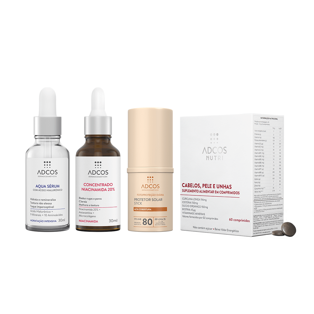 *A ADCOS se compromete a manter atualizadas as listas de ingredientes de todas as nossas fórmulas neste site. No entanto, os produtos podem ser atualizados para um cuidado ainda maior para sua pele, então os ingredientes estão sujeitos a alterações. Fazemos o máximo para deixar tudo sempre atualizado por aqui, mas para ter a lista precisa dos ingredientes de cada produto, consulte a embalagem do mesmo.